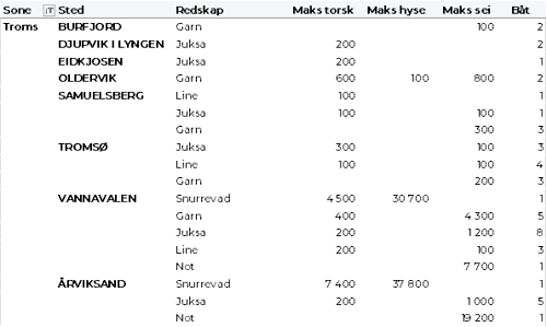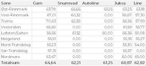 Kvanta fordelt per leveringssone fremgår av tabell 2. 84 % av kvantumet var levert i Finnmark.