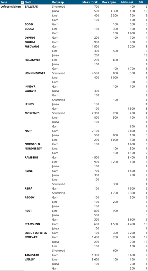 Hittil i år (per uke 6) er det omsatt for totalt 1.969 millioner kroner i Norges Råfisklag. Herav utgjør utenlandske landinger 107 millioner kroner. Norske fartøy står for resterende verdi på 1.862 millioner kroner, fordelt med 1.240 millioner på fersk og 622 millioner på fryst. Omsetningen til samme tid i fjor utgjorde 2.077 millioner kroner, herav 267 millioner kroner etter landing fra utenlandske fartøy. For norske båter var omsetningen 1.811 millioner kroner, fordelt med 871 på fersk og 940 på fryst råstoff. Omsetningen av fersklevert råstoff er dermed opp med 369 millioner kroner, mens for fryst er det en reduksjon på 318 millioner kroner.